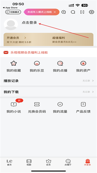 1、打開樂視視頻的APP,進入時點擊右下未登錄的圖標。