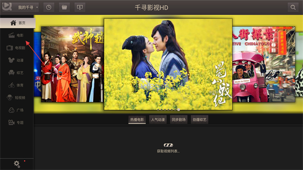 1、啟動千尋影視的App,在首頁左側點擊電影的標簽。