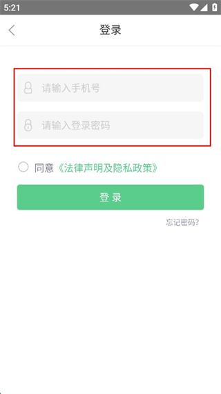 2、在登錄頁面依次填寫對應的手機號碼,再輸入預先設置好的登錄密碼。