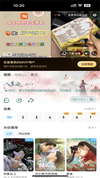 1、在優酷中找到要觀看的內容,如入青云,點擊進入視頻播放界面。