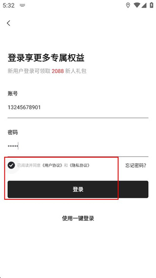 4、確認信息填寫完整且協議已勾選后,找到界面里的登錄按鈕并點擊,完成賬號登錄。