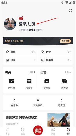 1、打開優奢奢侈品軟件,進入首頁后找到下方功能欄里的我的選項,點擊進入對應頁面。