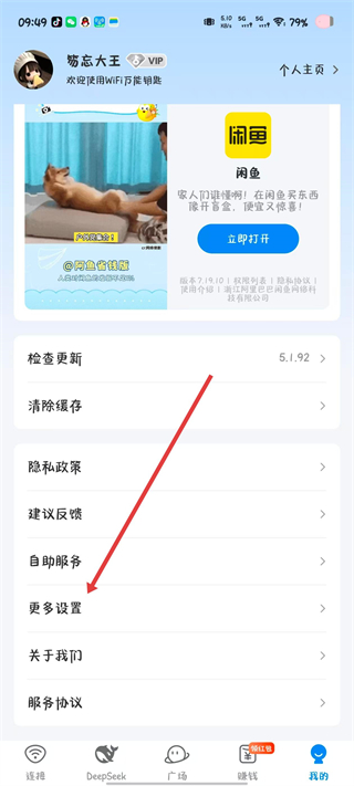1、打開WiFi萬能鑰匙,找到更多設置選項并點擊,進入更多設置界面。