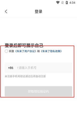 4、在登錄界面勾選同意相關協議,輸入手機號后點擊獲取短信驗證碼。
