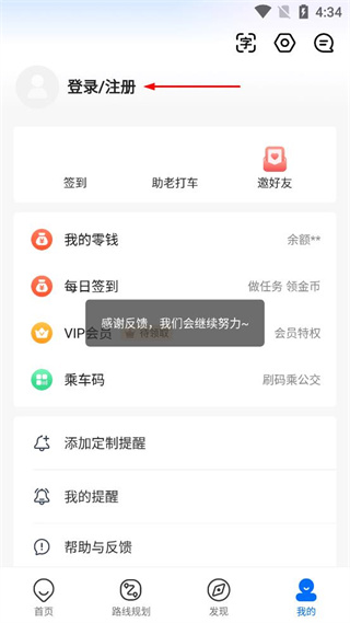 3、在個人中心頁面找到登錄/注冊選項,點擊該選項跳轉至登錄界面。