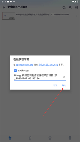 4、當頁面彈出在線獲取字幕的提示后,點擊確定即可。