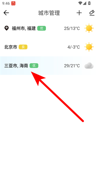 5、添加完成后回到城市管理頁面,可看到新添加的城市及對應的天氣預報信息。