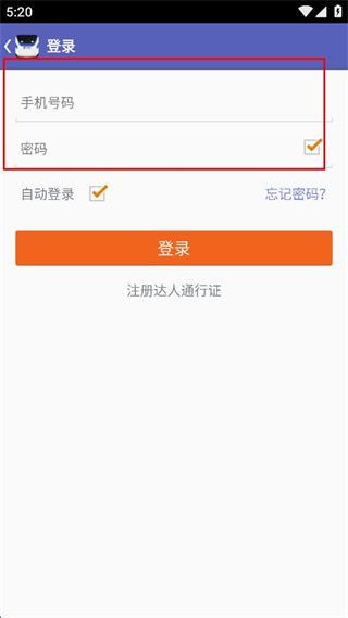 3、進入登錄頁面后,在手機號碼輸入框填寫對應號碼,再在密碼框輸入設置好的密碼。