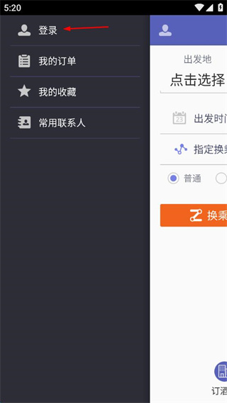 2、在展開的側邊菜單中,找到登錄選項,點擊該選項進入對應的登錄操作頁面。