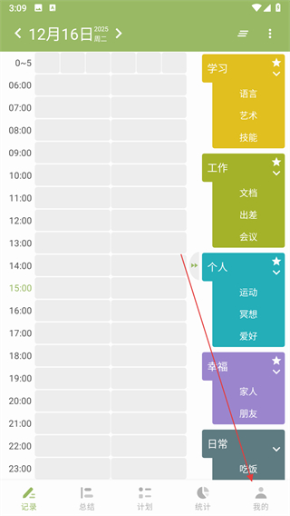 1、打開時間管理軟件,點擊右下角我的,進入個人頁面。
