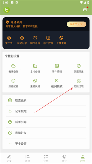 2、在個人設置頁面中找到功能選項按鈕,點擊該按鈕進入功能設置界面。