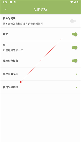 3、在功能設置界面里找到自定義導航欄選項,點擊后進入導航欄設置頁面。