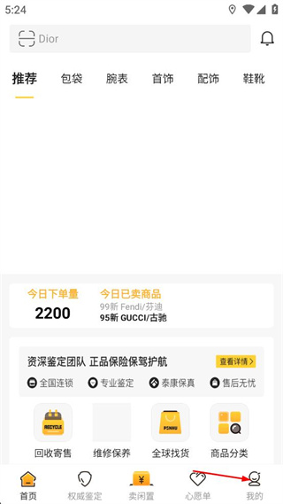2、進入胖虎奢侈品首頁,找到下方功能欄里的我的選項,點擊該選項進入個人頁面。