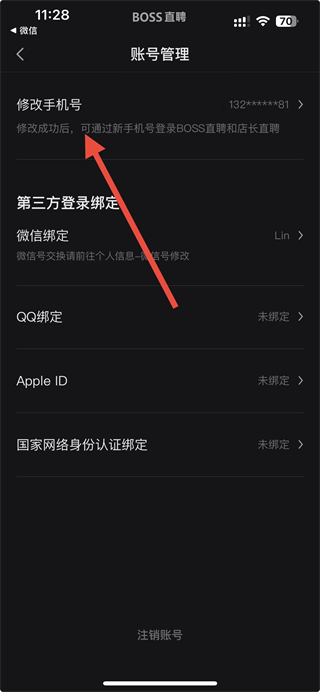 4、在賬號管理頁面,點擊修改手機號選項,按照提示完成手機號修改操作即可。