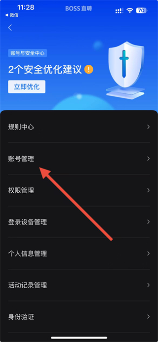 3、在帳號與安全中心頁面,點擊賬號管理選項。