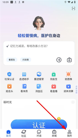 1、在老來健康應用的界面,點擊底部導航欄右側我的選項,進入對應頁面。