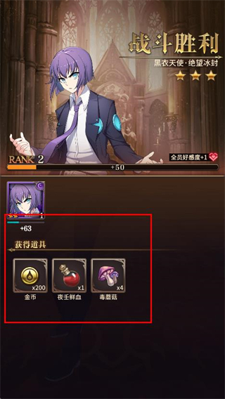 4、戰斗勝利后,可以在結算頁面查看 獲得游戲道具。