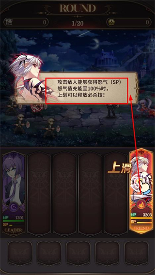 3、當怒氣值滿時,上滑需要出戰的角色即可釋放必殺技。