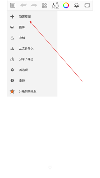 1、打開妙筆生花應用,點擊頁面頂部的菜單圖標,展開功能選項列表。