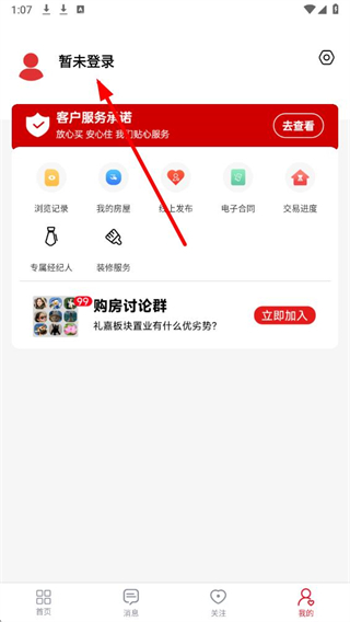 2、進入對應頁面后,點擊暫未登錄區域,跳轉至賬號登錄的選擇界面。