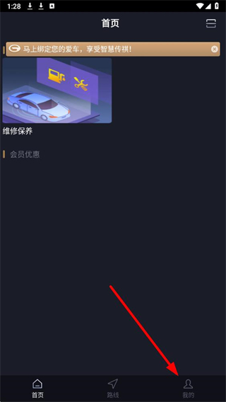 1、打開智慧傳祺app,點擊底部導航欄中的我的進入個人界面。