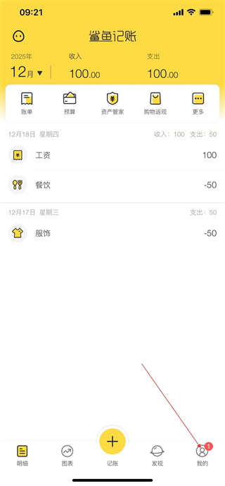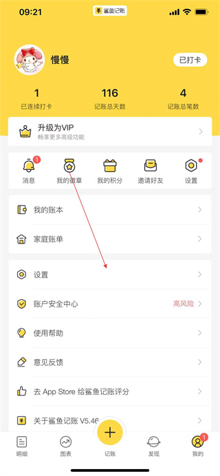 1、打開鯊魚記賬app首頁,點擊底部我的選項,進入個人中心頁面。
