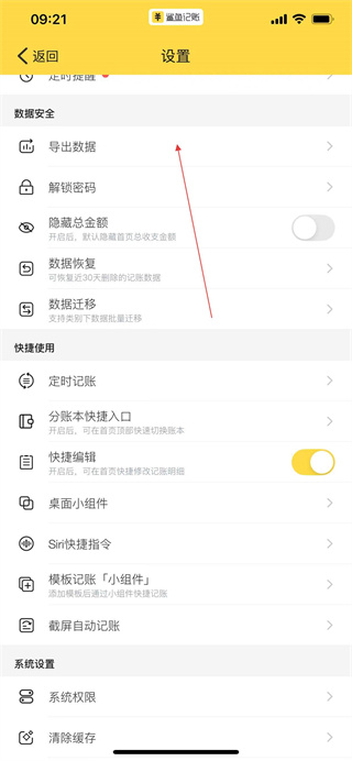 3、在設置頁面點擊導出數據選項,進入導出數據頁面。