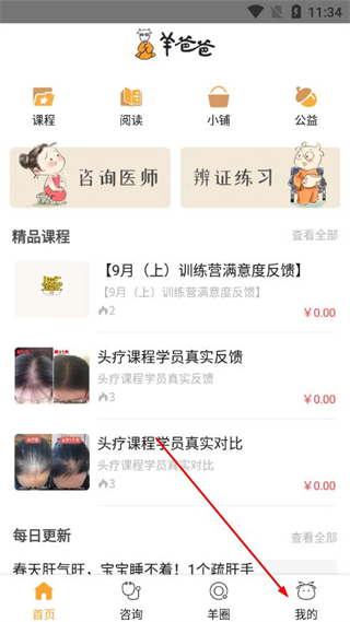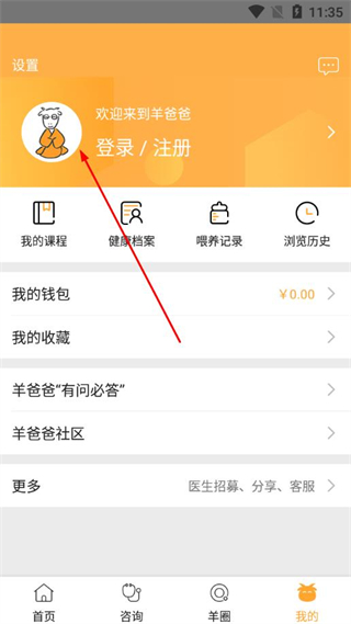 1、打開羊爸爸app首頁,點擊底部我的,進入個人中心頁面。