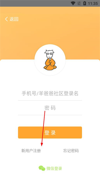 3、在登錄頁面點擊新用戶注冊,進入新用戶注冊頁面。