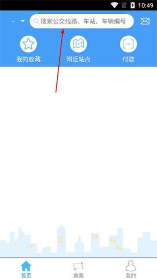 3、完成城市選擇后,進入軟件主界面,點擊頂部搜索框,可準備查詢公交信息。