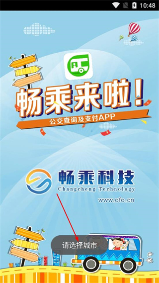 1、打開暢乘軟件,在初始界面找到請選擇城市按鈕并點擊,進入切換城市頁面。