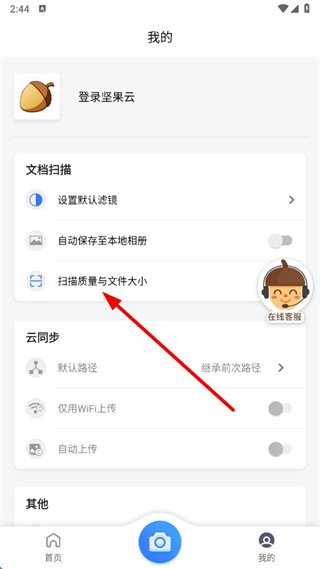 2、在個人中心界面,點擊掃描質量與文件大小選項,進入掃描質量與文件大小設置界面。