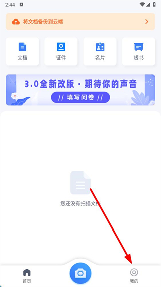 1、在堅果云掃描首頁,點擊右下角我的按鈕,進入個人中心界面。