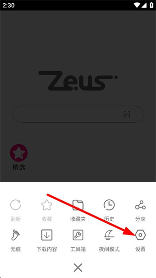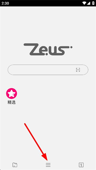1、打開宙斯瀏覽器app,點擊頁面底部的菜單按鈕。