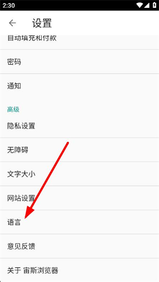 3、進入設置頁面后,找到并點擊下發的語言選項。