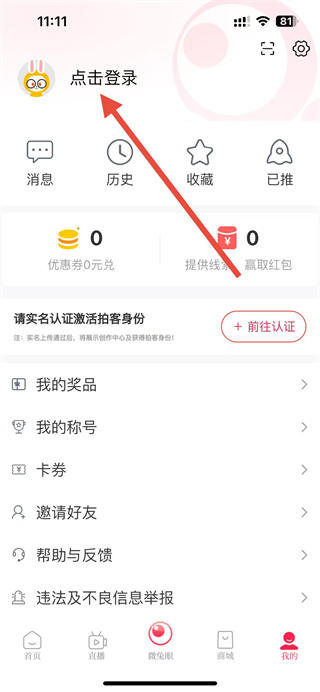 2、在個人頁面中,找到點擊登錄區域并點擊,進入百姓關注的登錄界面。