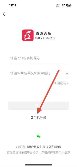 3、在登錄界面里,找到手機登錄選項并點擊,切換至手機號驗證的登錄界面。