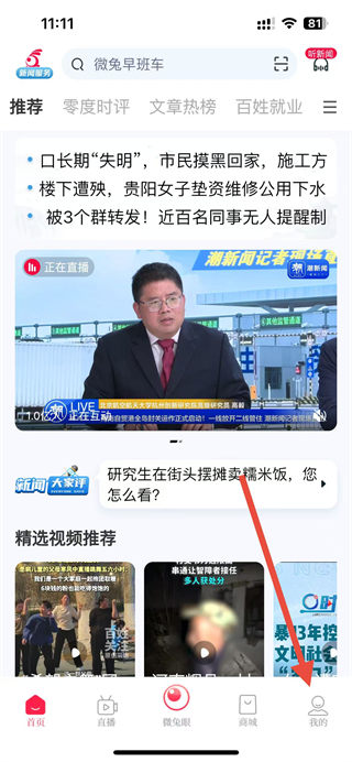 1、在百姓關注應用界面,找到底部我的選項并點擊,進入個人頁面。