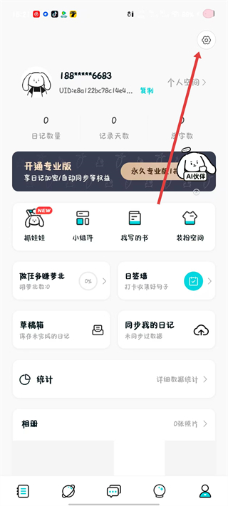 1、打開moo日記軟件,點擊界面右上角的設置按鈕進入設置頁面。