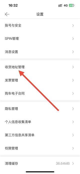 2、進入設置界面后,找到收貨地址管理選項并點擊,進入地址管理頁面。
