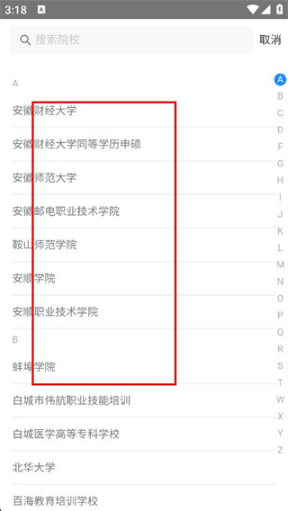 3、在院校列表中選擇對應的院校,并選擇對應的業務線。