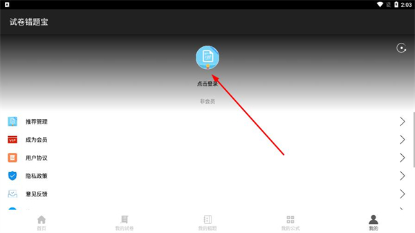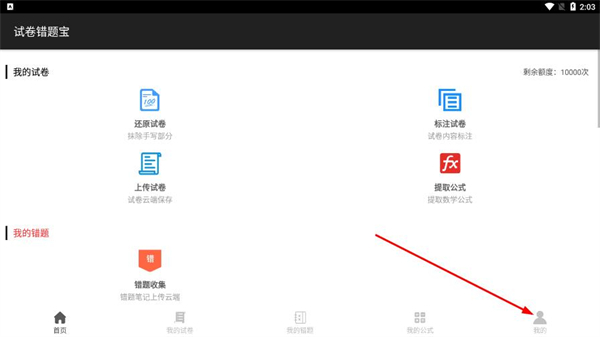 1、打開試卷錯題寶,點擊底部導航欄我的選項。