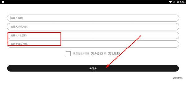 4、設置密碼,點擊去注冊,根據提示完成登錄。