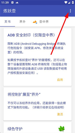1、打開煉妖壺app,點擊頁面右上角的三點菜單按鈕。