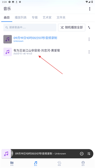 2、在音樂列表中,找到目標音樂文件并點擊,進入該音樂的播放準備界面。