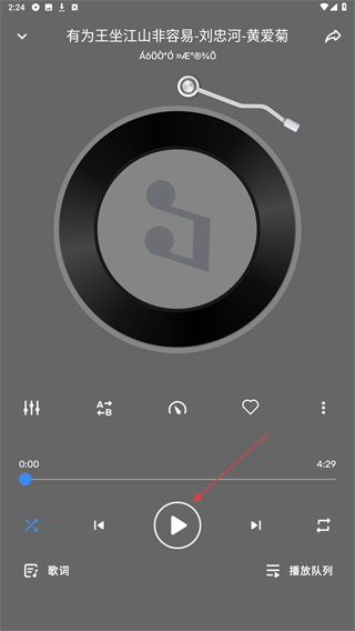 3、在音樂播放界面中,點擊底部的播放按鈕,即可開始播放音樂。