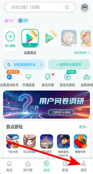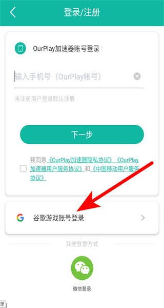 3、在頁面找到谷歌游戲賬號登錄選項并點擊,按提示完成登錄操作。