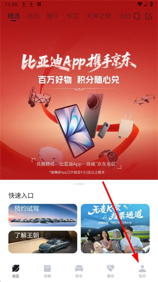 1、打開比亞迪app,在社區頁面點擊動態選項,進入動態頁面。