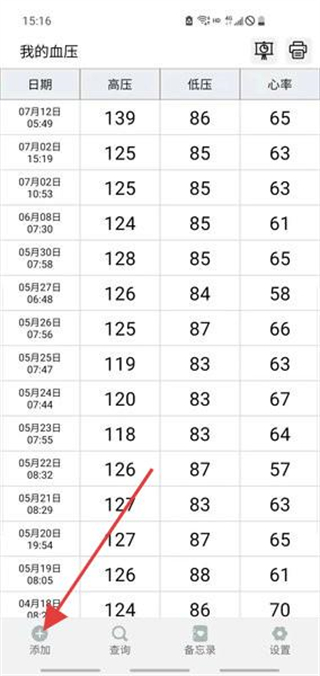 2、點擊添加,即可輕松記錄當天的血壓數據