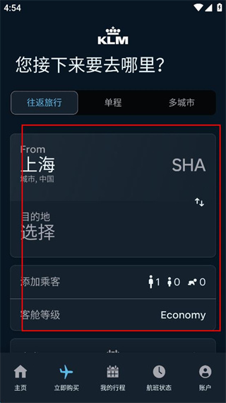 3、完成登錄操作后返回主頁,點擊立即購買選項,即可進入行程信息填寫界面。